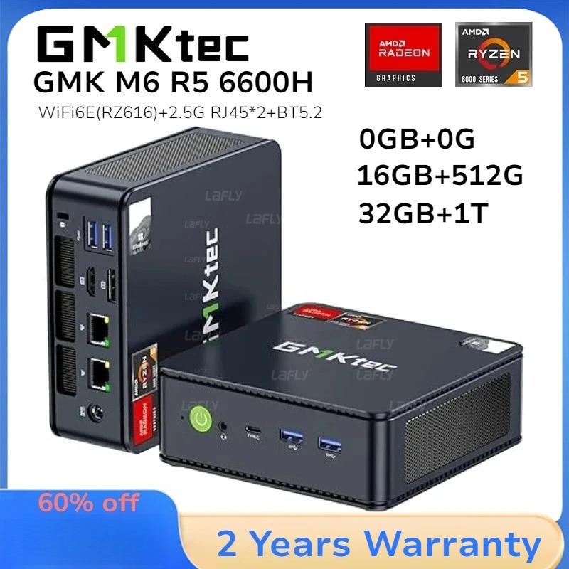 GMKtec M6 Mini-PC AMD R5 6600H 6-Kern 12-Thread 16GB DDR5 512GB PCIe 3.0 SSD WiFi 6 BT5.2 Desktop-Computer