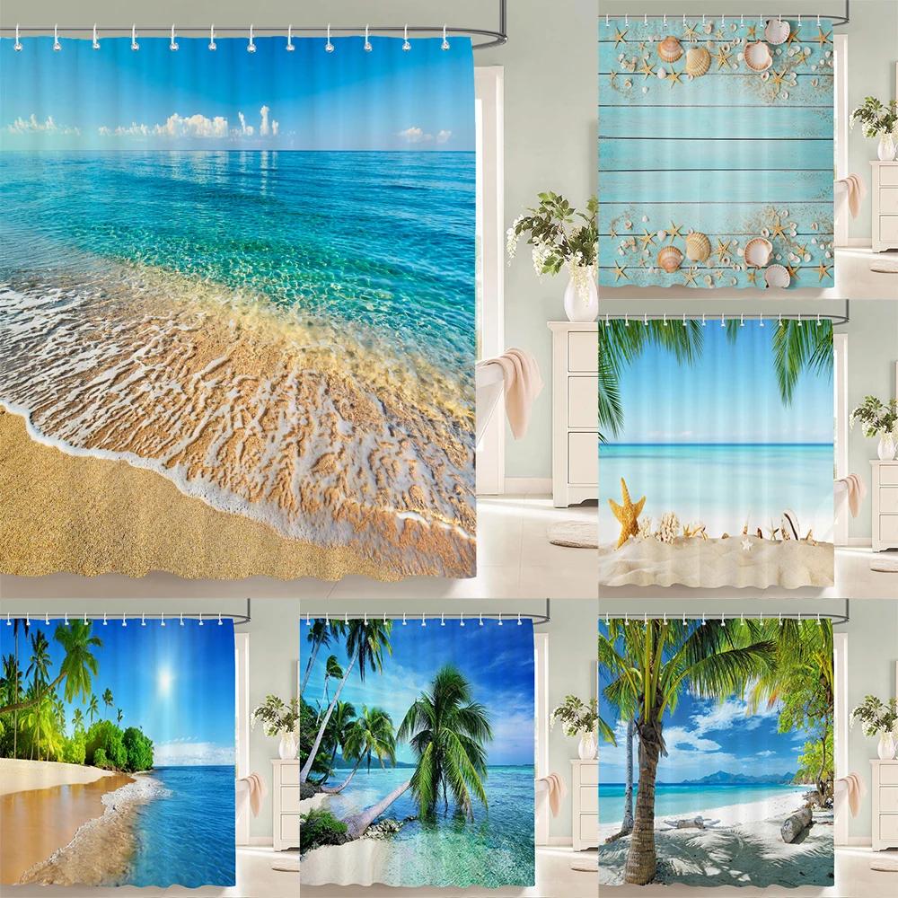 3d Strand Landschaft Duschvorhänge Meer Ozean Mittelmeer Badezimmer Vorhang Wasserdichte Stoff Dekoration 180*240 cm Bad Vorhang