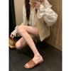 Schafleder~ Dame schleppt Urlaubswind gewebte Hausschuhe Damen Sommer dicker Absatz Leder Ein-Wort kühle Hausschuhe draußen