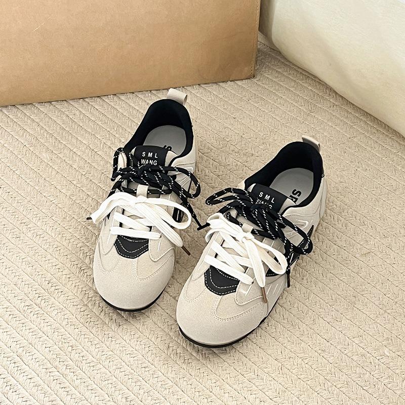Damen Frühling neue zweifarbige Schnürsenkel vielseitige Mode Sport- und Freizeitschuhe Tide