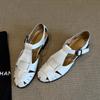Rindslederversion~ Retro-Stil gewebte Tasche Kopf Sandalen Damen Sommerbekleidung echtes Leder flachsohlige coole Hausschuhe Schweinekäfigschuhe