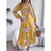 GMXIA Frühling Sommer Sexy Knoten zum Binden Blume Langärmlig Schlitzkleid für Damen