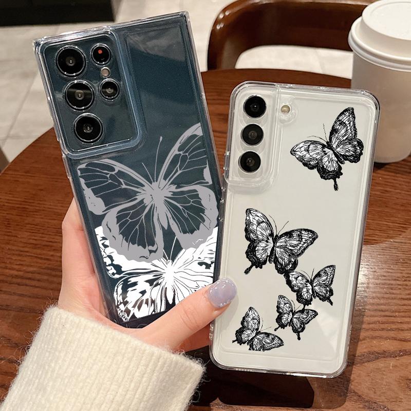 Schmetterling Blumen Hülle für Samsung Galaxy A56 A55 A54 5G A36 A35 A34 A26 A16 A15 S21 FE S22 S23 S24 Plus S25 Edge S25 Ultra Klare Weiche TPU Handyhülle