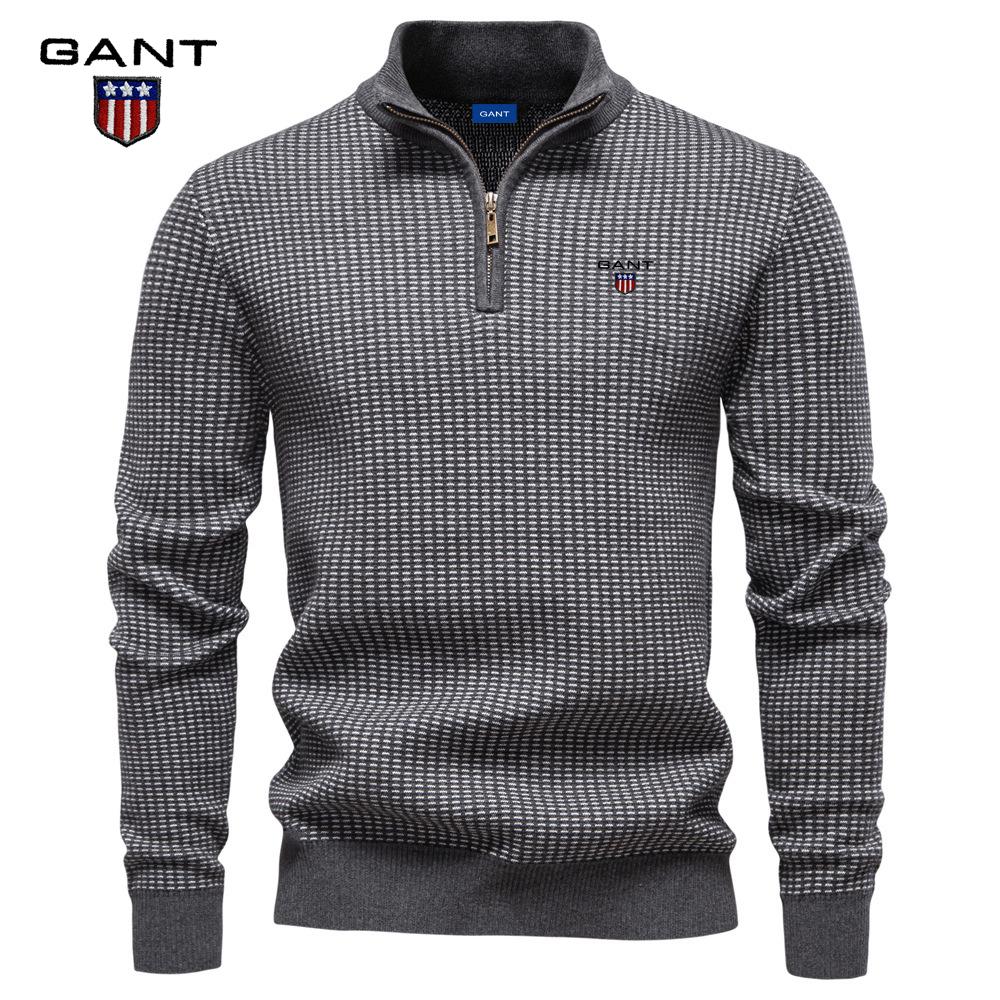 Gant 2025 Herbst und Winter Stickerei Neuer Herren Europäische Größe Dicke Pullover Herren Halber Reißverschluss Stehkragen Business Casual Pullover Herren