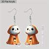 2D Flat Acrylic Halloween Lantern Orange Ghost Pendant Earrings, A Festive Gift for Women, Festive Party Decoration Jewelry.