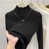 Halbhoher Kragen Holzohr Strickshirt Herbst und Winter Einfarbig Rippstrickpullover Slimbase Innentop