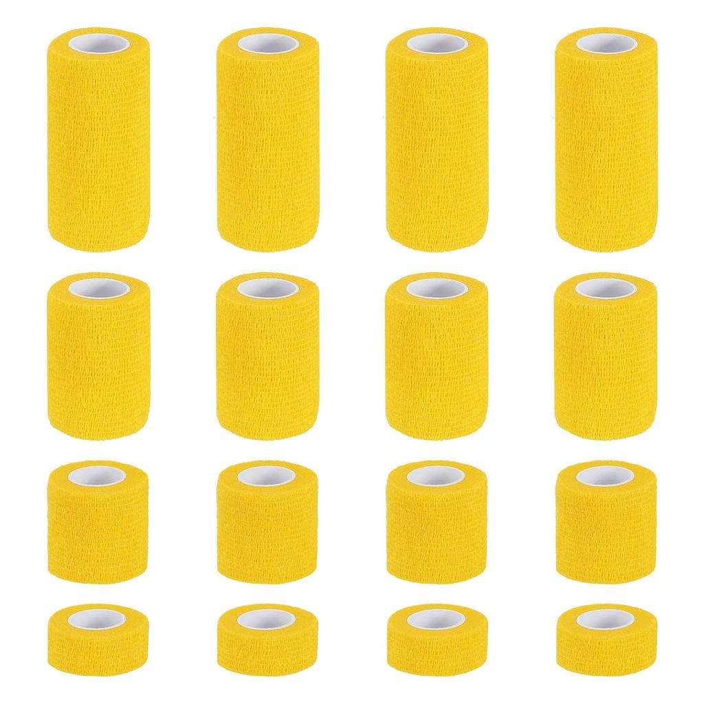 PATIKIL Bandage 16 5 Wrap for Athletic and Outdoor Yellow 1"/2"/3"/4" Self-Adhesive Wraps, count, yards, Elastic, Breathable, Self-Adhesive Tape,