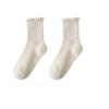 Cremefarbene Schnür-Damen-Wadenstrümpfe, Frühling und Sommer Reine Baumwolle Japanischer Stil Rüschen Jk Socken, Herbst und Frühling Kurze Socken