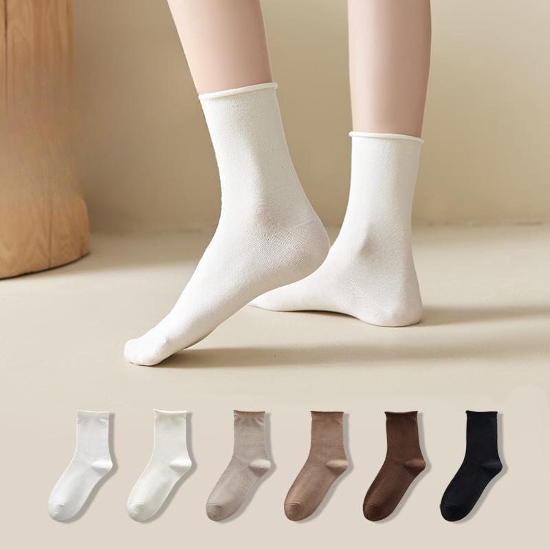 Damen Frühling und Herbst Neue Einfarbige All Bequeme Rollrand Lockerer Schaft In der Röhre Baumwollsocken