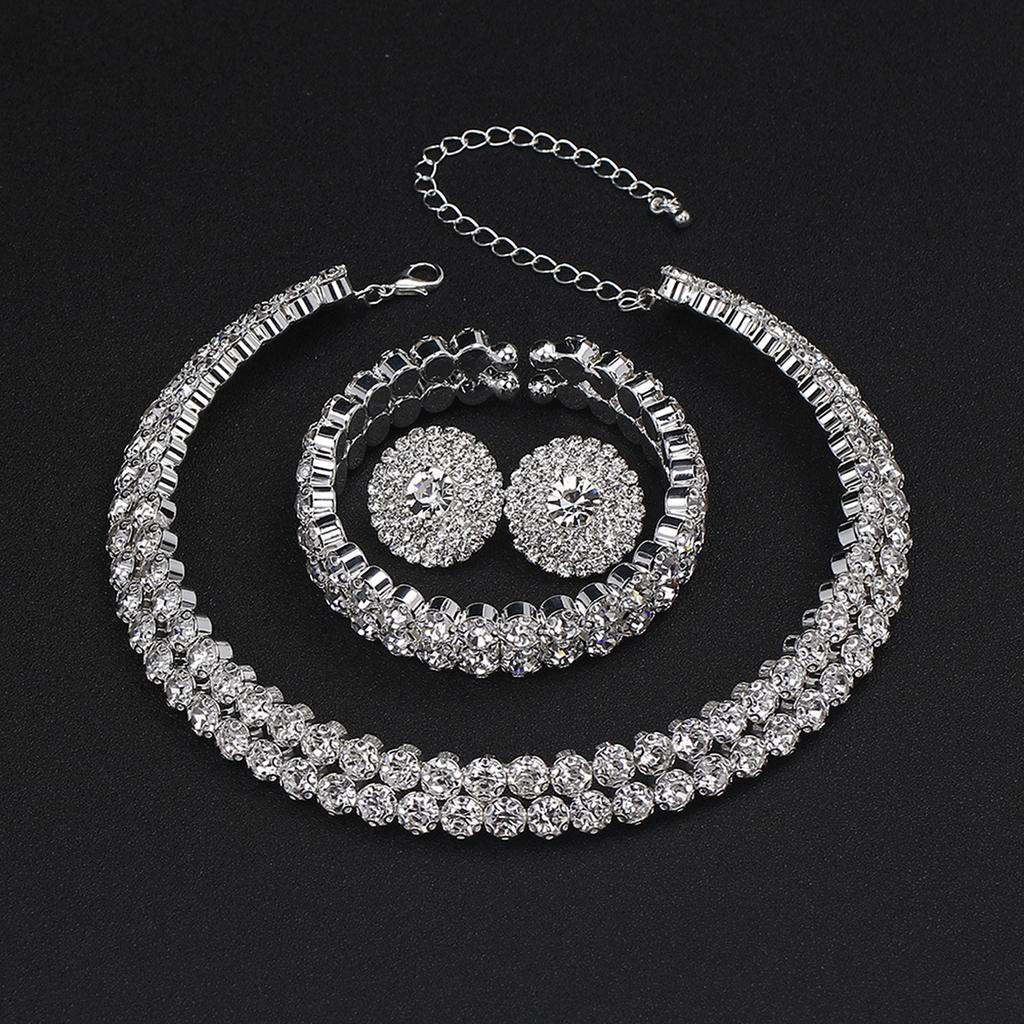 4-teiliges Hochzeits Damen Zirkon Set Strass Ohrringe Halskette Armband Party Luxus Mode Accessoires