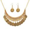 Vintage Gravierte Münze Bib Statement Halskette Boho Gold Kupfer Plattiert Münzen Armband Quaste Schick Strass Zirkon Set für Frauen