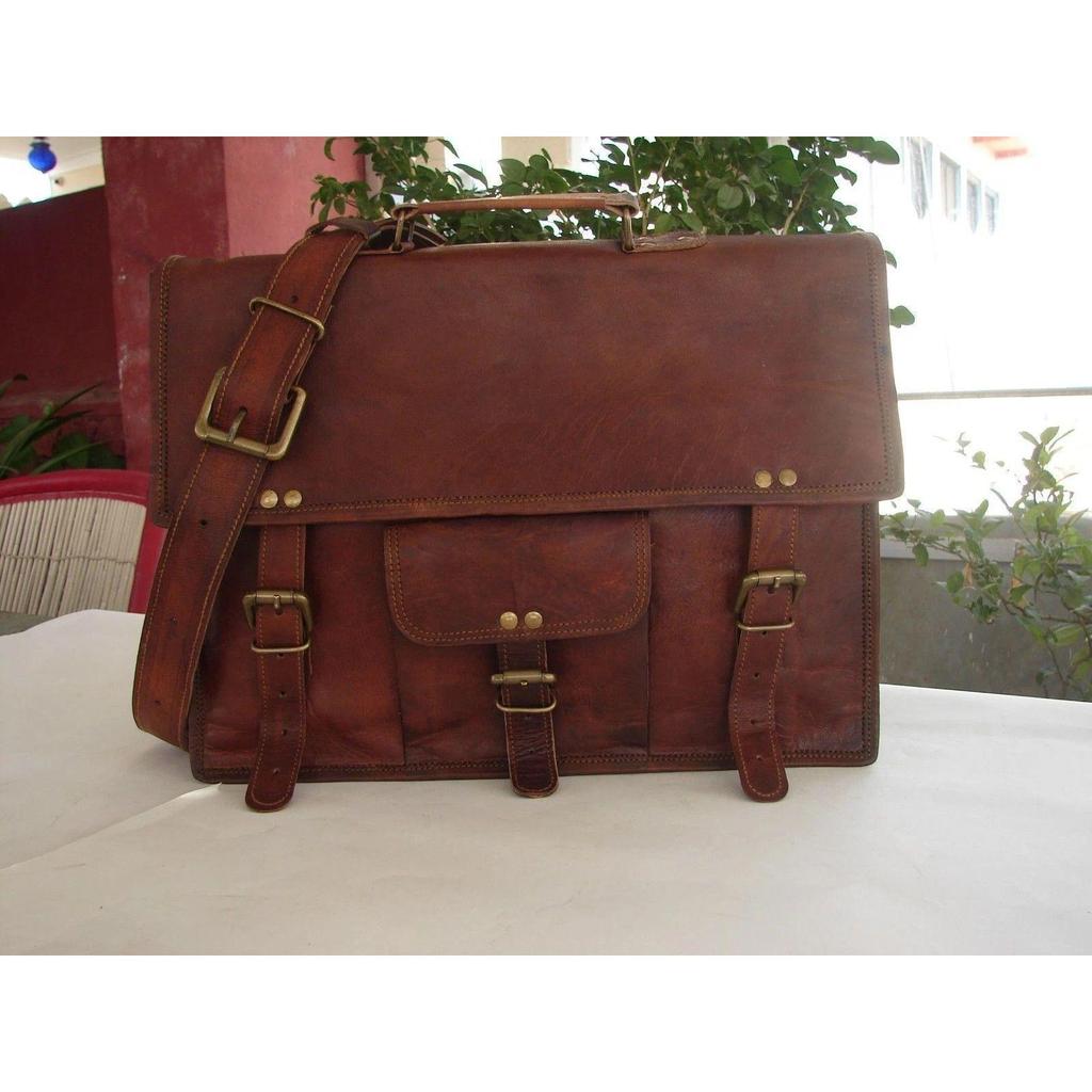 Genuine Men's Vintage Brown Shoulder Laptop leather bag Leather Messenger Bag