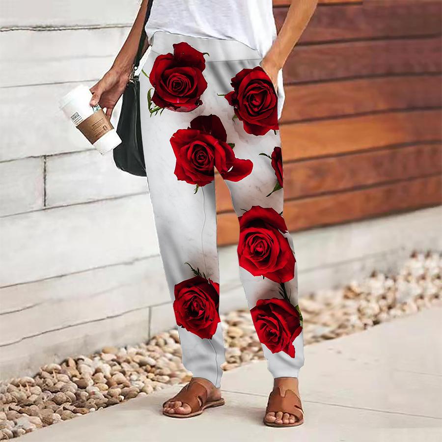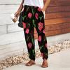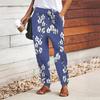 Damen Hose mit Blumendruck zum Schnüren Elastischer Bund Weite Hose Lässige Lange Hose Hose mit Taschen