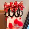 Tassel Children Wig Hairpin Braid Hair Red Bow Hairpin Cute Chinese New Year Headwear Children