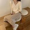 Hahnentritt Slim-Fit Damen Herbst Winter Strick Midi-Rock Wolle Vielseitig Hohe Taille Bodycon Halber Rock