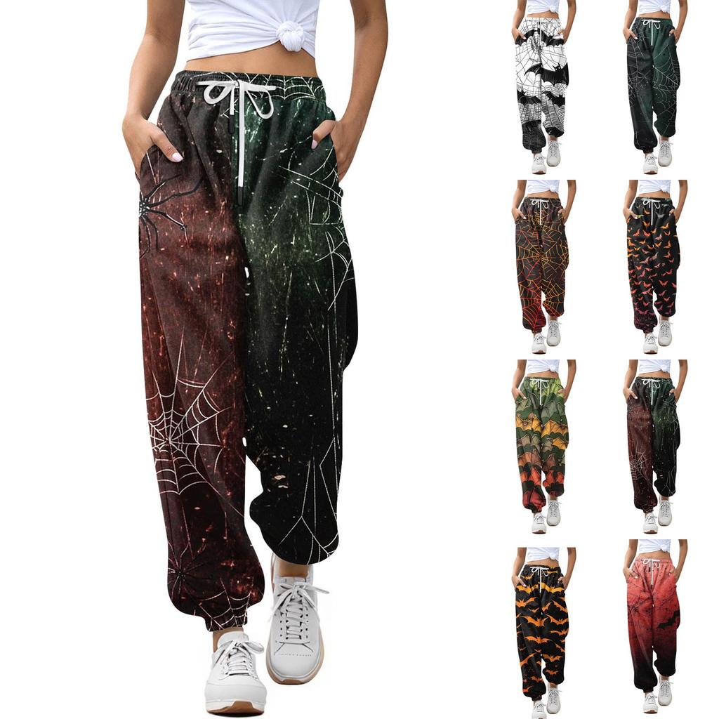 Damen Casual Fashion Halloween Printed Freizeithose Jogginghose Hose Kordelzug Elastische Taille Kordelzug Kordelzughose