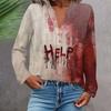 Damen Modisches Und Lässiges Hemd Langarm V-Ausschnitt Knopf Bedruckte Bluse Top