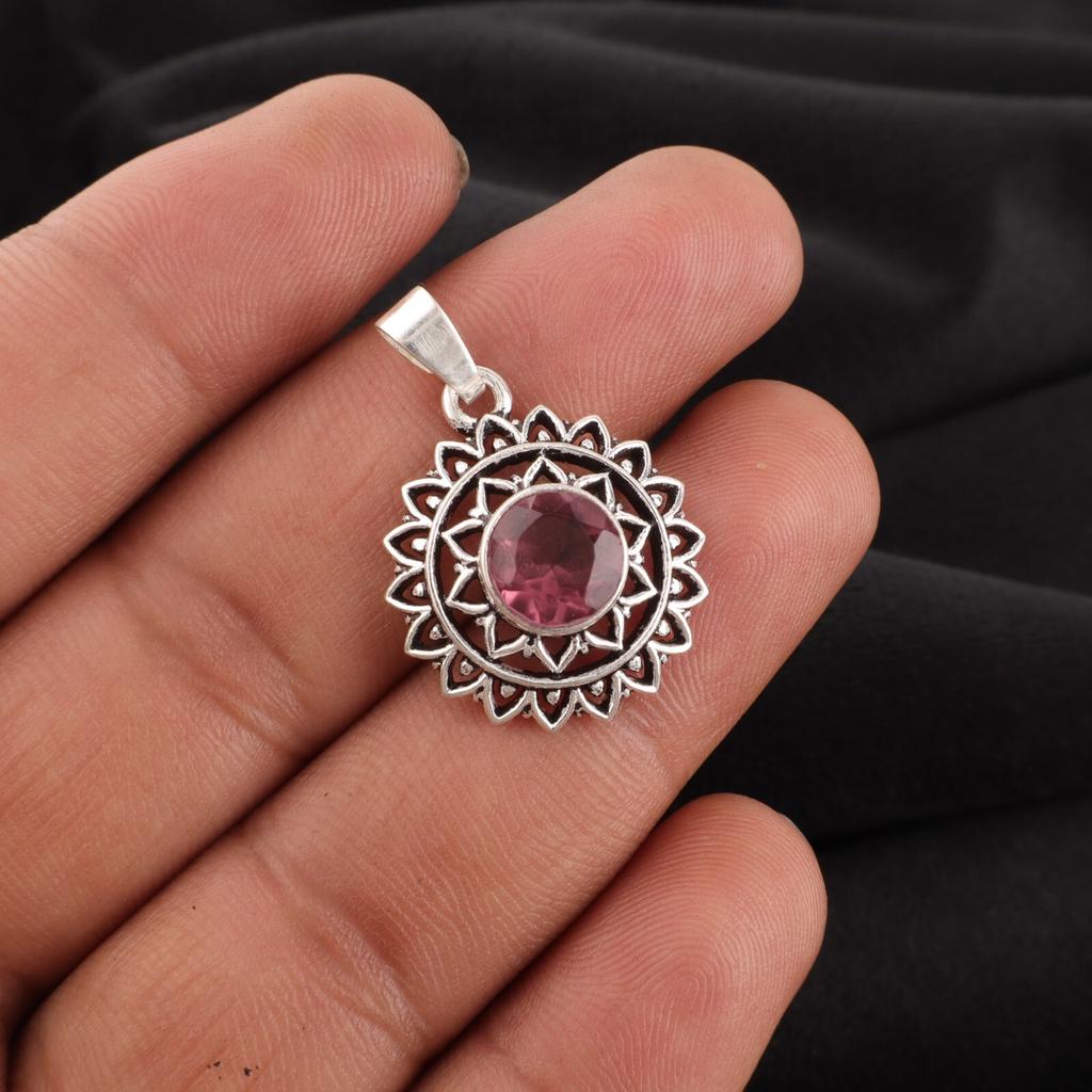 Rhodolith Edelstein 925 Sterlingsilber Schmuck Handgefertigt Partywear Anhänger 1.14" CP-30-7