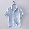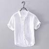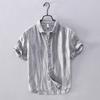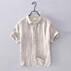 Men's Summer Linen V-Neck Stand Collar Short Sleeve Retro T-Shirt - Plus Size, Thin & Breathable