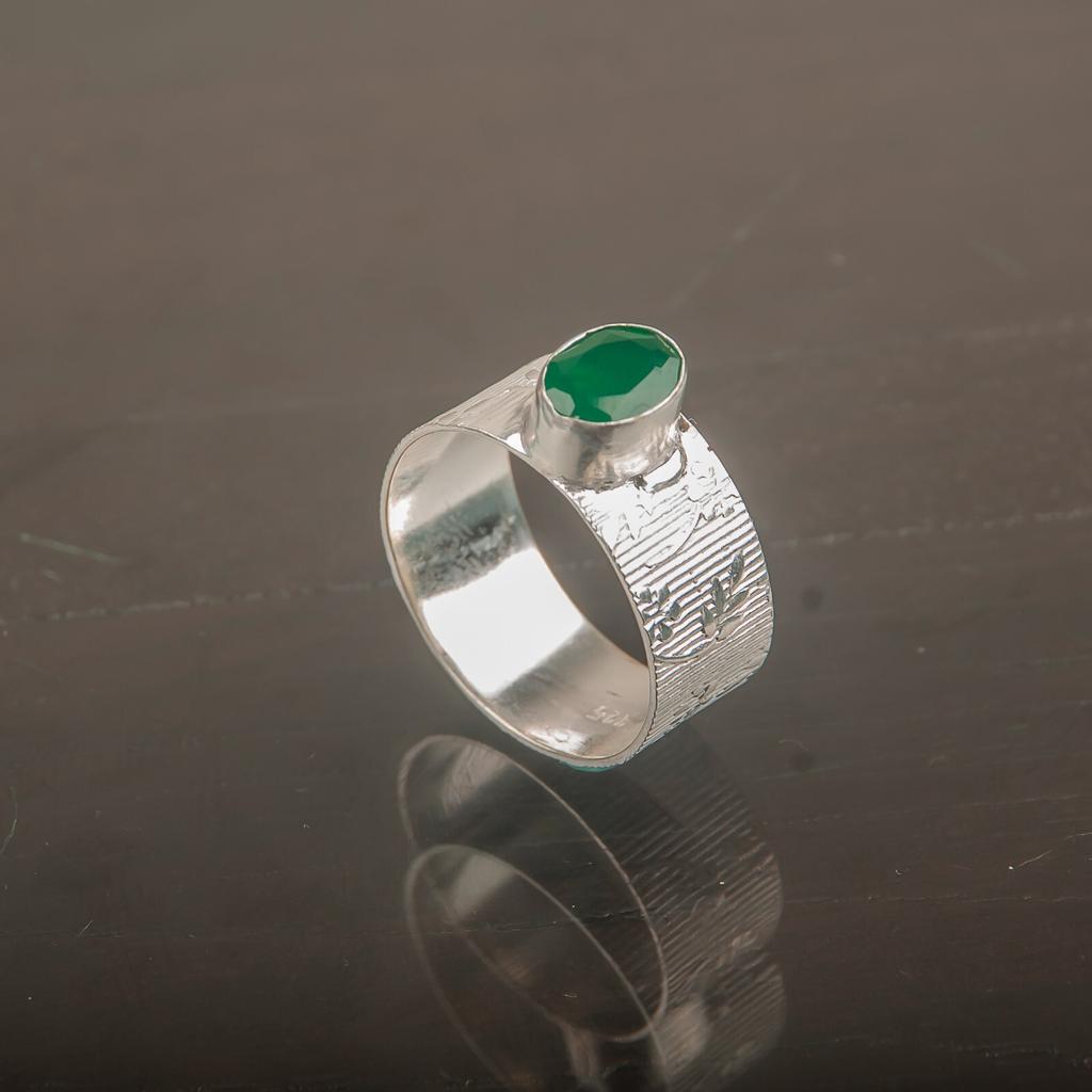 Grüner Onyx Edelstein 925 Sterlingsilber Schmuck Handgefertigter Ring für Geburtstagsgeschenk RR-3-14