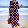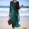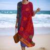 Damen Modisches Bedrucktes Rundhals Siebenviertelärmel Lockeres Kleid