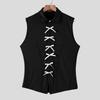 INCERUN Men Lapel Neck Sleeveless Button Up Bow Casual Loose Tank Tops