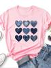 Damen Cowboy Herz Print T-Shirt für Valentinstagsgeschenke Mode Rundhals Kurzarm T-Shirt Lässige Damenbekleidung