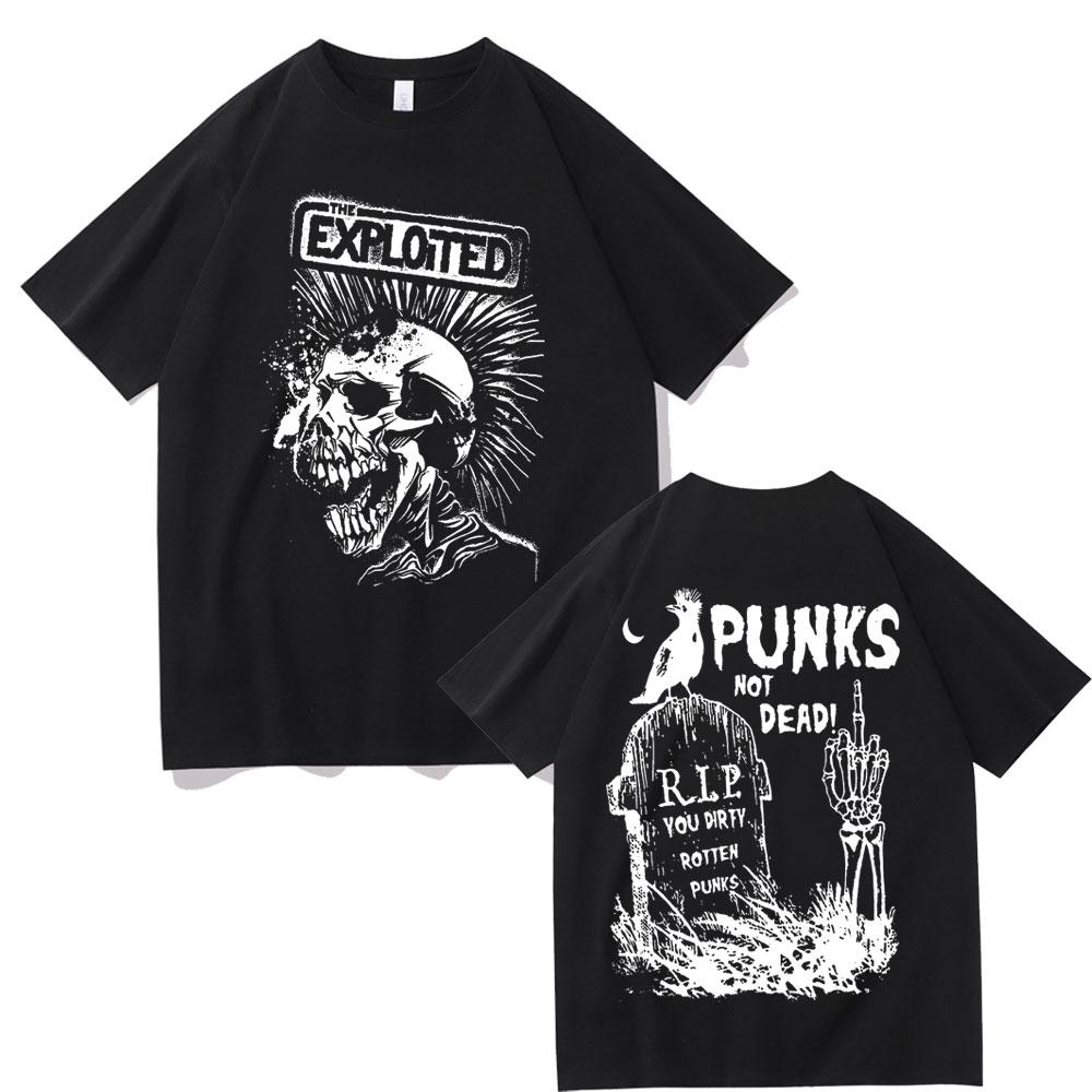 Heißer Verkauf Rockband The Exploited Grafik T-Shirt Punks Not Dead Print T-Shirts Männer Frauen Hip Hop Gothic Punk Übergroße T-Shirts