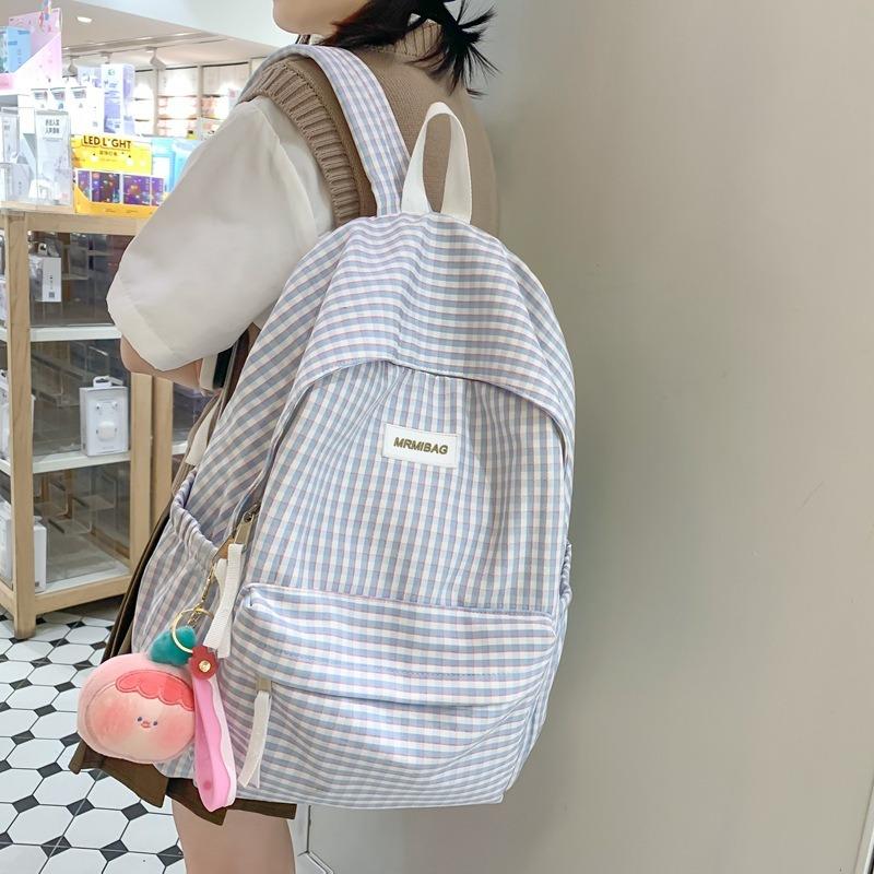 Literary plaid schoolbag female Harajuku junior high school student campus backpack fresh college student shoulders