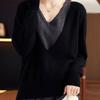 Spring Autumn Versatile Temperament Pullover V-neck Casual Long-sleeved Fake Two-piece Slim Sweater Women