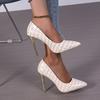 Frühling und Herbst neue karierte Einzelschuhe spitze dünne Absätze Mode Street Pedal High Heels Damenschuhe