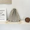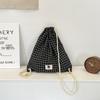 Vintage Korean Plaid Drawstring Bag Y2K Aesthetic Harajuku Plaid Backpack Casual Lightweight Student Schoolbags Outdoor