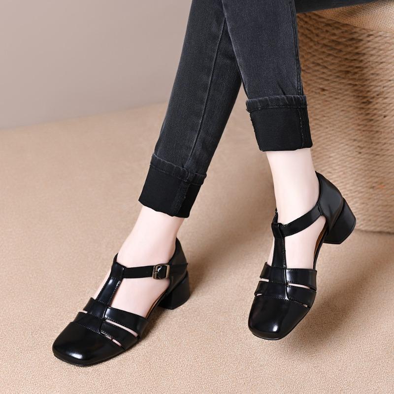 Comfortable Closed-toe Shoes, Women's Retro Hollowed-out Shoes, One-strap Versatile Chunk-heeled Sandals