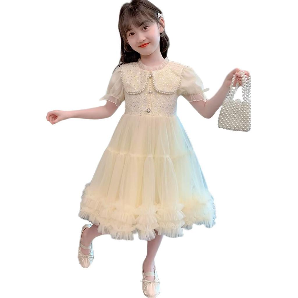 Princess Dress for Piano Pearl Short Cute Long Perfect for Piano and Commemorative Photos [Jzozuxvv] Girls' Recitals, Collar, Sleeves, Formal, Dress,