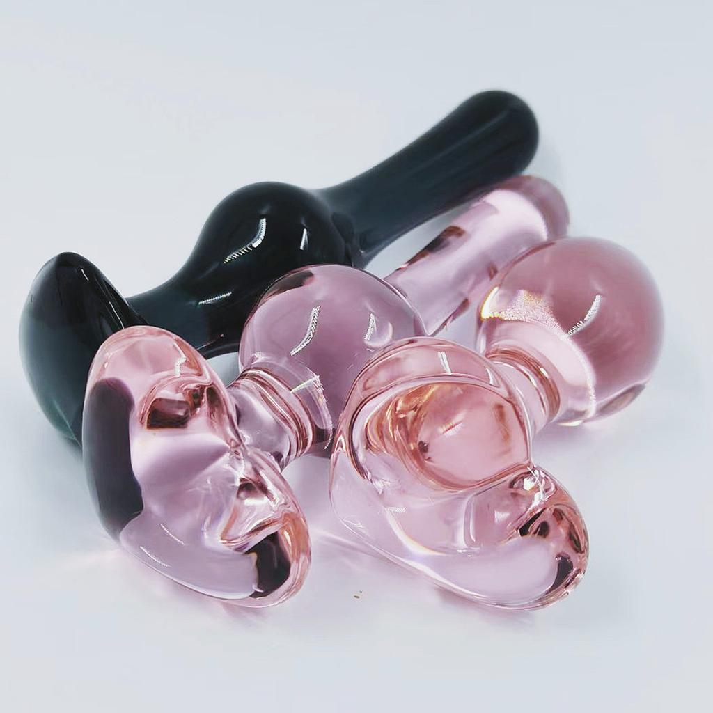 Glas Analplug Sexspielzeug für Frauen Rosa Herz Analstimulator Kristall Buttplug Frauen Männer Prostata Massage Vagina Analplug Kugeln