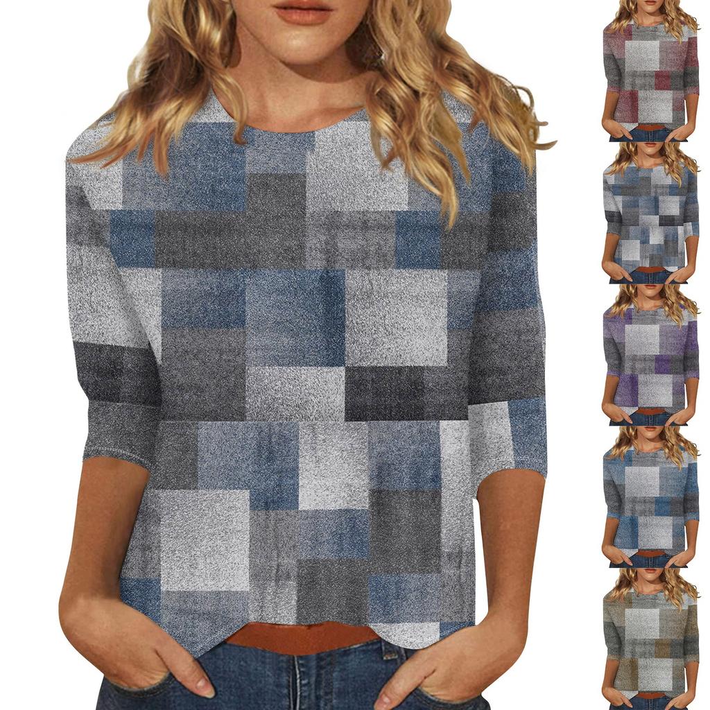 Women's Fashion Casual Three-quarter Sleeve Printed Round Neck Top