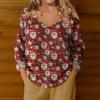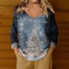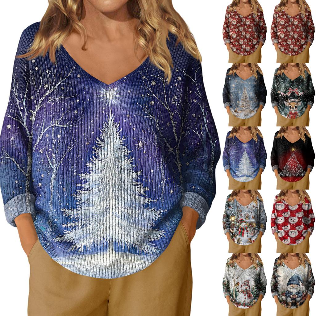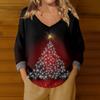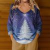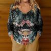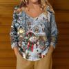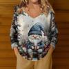 Damenmode Lässig Langarm Weihnachts Schneemann Druck V-Ausschnitt Oberteil