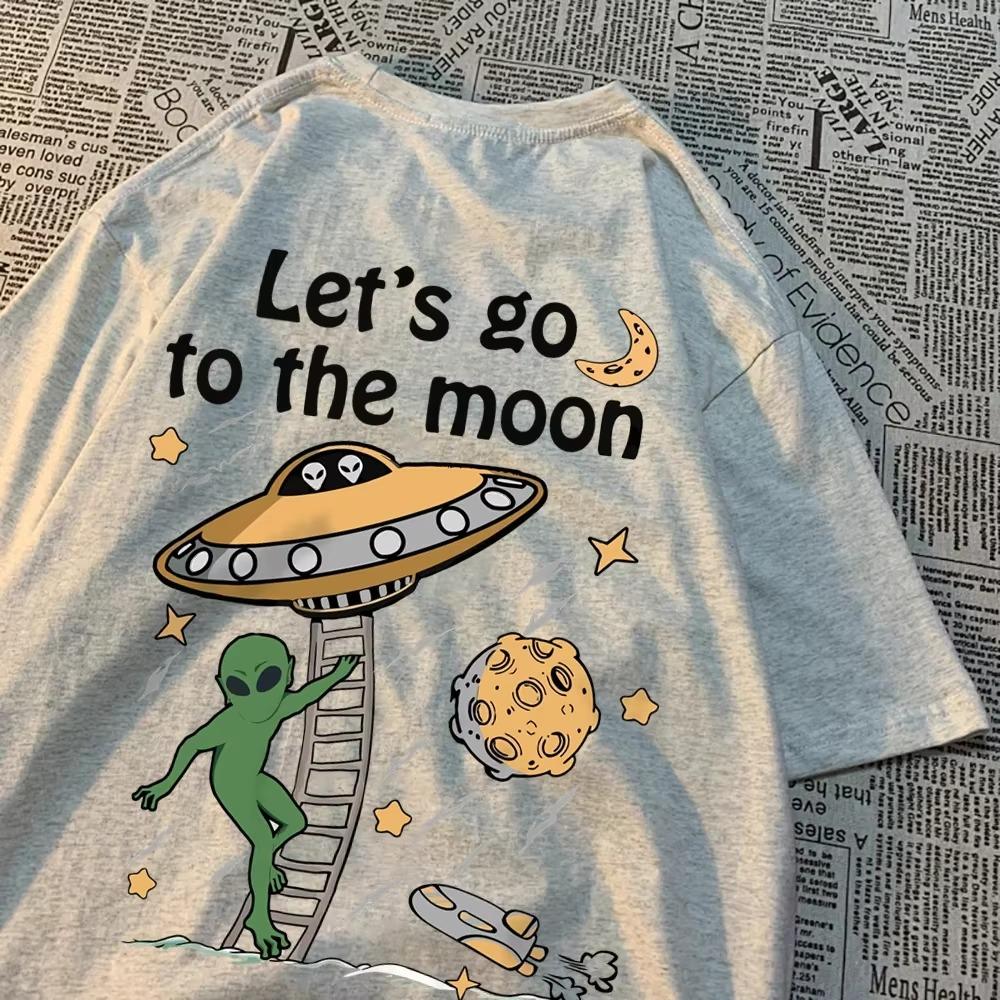 Let's Go To The Moon Alien Ufo Herren T-Shirt Baumwolle Locker Tops Locker Rundhals T-Shirts Lässig Atmungsaktives T-Shirt Partnerkleidung