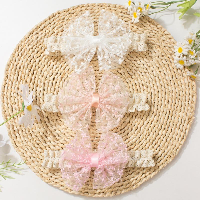 Dünne Kinderhaaraccessoires, neues Spitzen-Schleifen-Baby-Stirnband, niedliches Baby-Kopfschmuck-Stirnband.