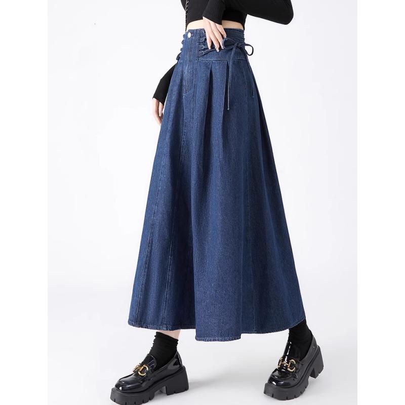 Frühling Herbst Damen Übergröße Mode Hohe Taille Lässig Jeansrock Midilänge A-Linien-Rock