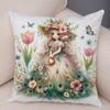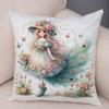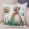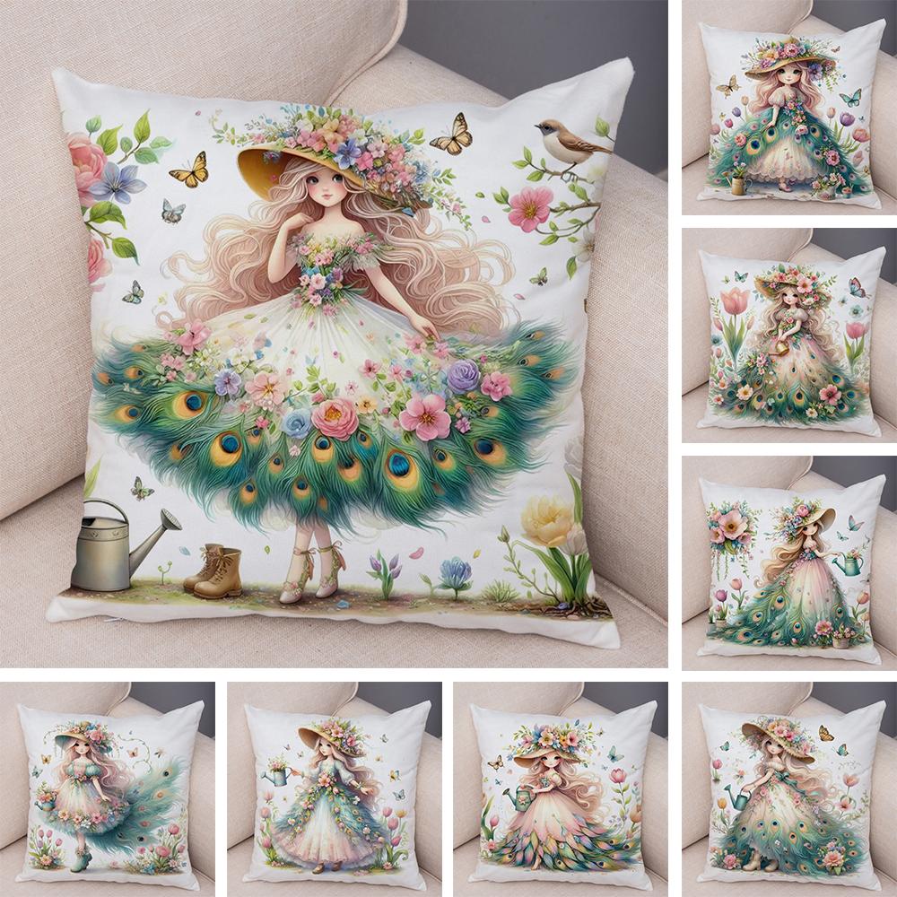 Pfau Blumenmädchen Kissenbezug Doppelseitiger Druck Kissenbezug Dekor Niedlich Cartoon Kind Weicher Plüsch Kissenbezug für Sofa Zuhause 45x45cm