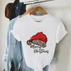(Asiatische Größe) Frohe Weihnachten T-Shirt Top Festival Neujahr Feiertag Lässig Leopard Buchstaben Trend Damen Print Dame Kurzarm Mode Grafik T-Shirts