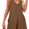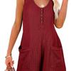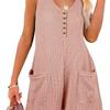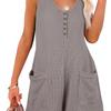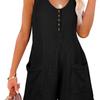 Button-Down-Overall vorne mit Taschen, lässiger, einfarbiger, ärmelloser Sommer-Overall