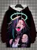 Vintage Herren Hoodie 3D-Druck Nymphet Tops Cartoon Mädchen Grafik Langarm Hoodie Mode Herren Oberteil Übergroße Streetwear T-Shirts