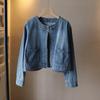 Mode Oansatz Jeansjacke Frauen Kurzmantel Frühling Herbst einreihige Tasche Lose Oberteile Weibliche Casual Jean Oberbekleidung