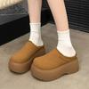 Wildleder Plateau Damen Baumwollpantoffeln Mittelhohe Absätze Designer Pantoletten Schuhe Neue Marke 2025 Trend Winter Warm Gehen Schnee-Stiefel für Damen