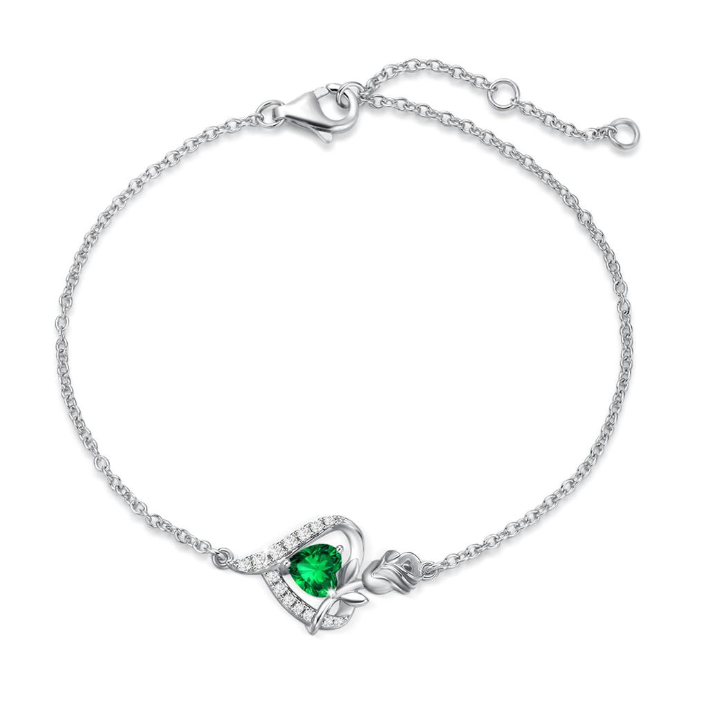 Bracelet with Emerald and Rose May Silver Perfect for White or any other special Gift wrapping Women's Motif, Birthstone, Platinum-Plated 925, Day,