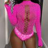 Sex clothes long sleeves rose red backless jacquard mesh clothes hollow one-piece tights