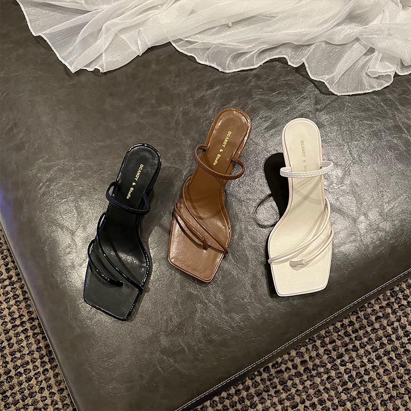 Xiaoxiangfeng~ Spot vielseitige französische Sandalen mit eckiger Spitze Damen Sommer 2025 neu dünne Riemen Kitten Heels