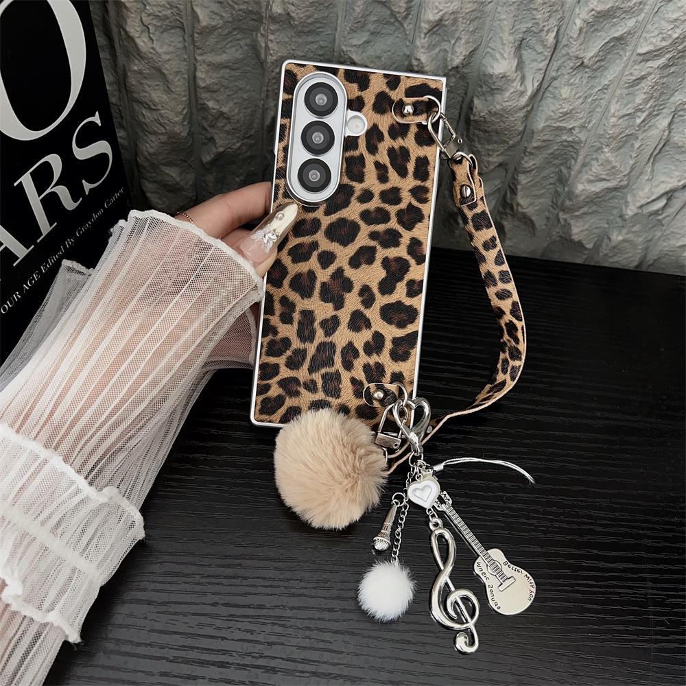 Für Samsung Galaxy Z Fold7 5G Hülle Leopardenmuster Leder+PC Handyhülle mit Gitarrenanhänger und Riemen